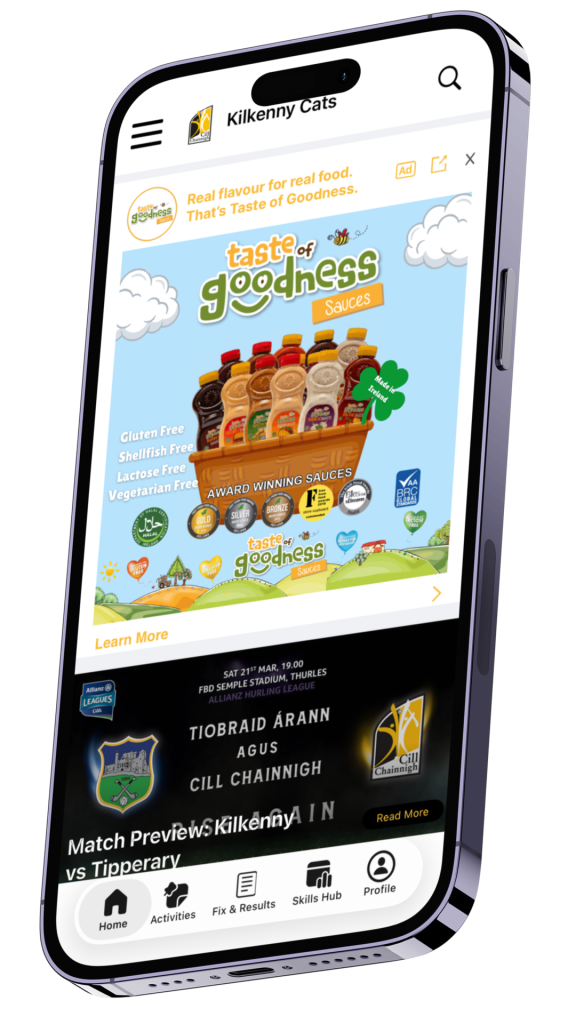 Kilkenny Cats Social is the official digital platform of Kilkenny GAA and our flagship community. Since launch, it’s grown to 8,200+ active supporters, 25+ local advertisers and over 1,000 pieces of exclusive content — with 50% of advertising revenue funding grassroots initiatives, including Kilkenny’s new Centre of Excellence.