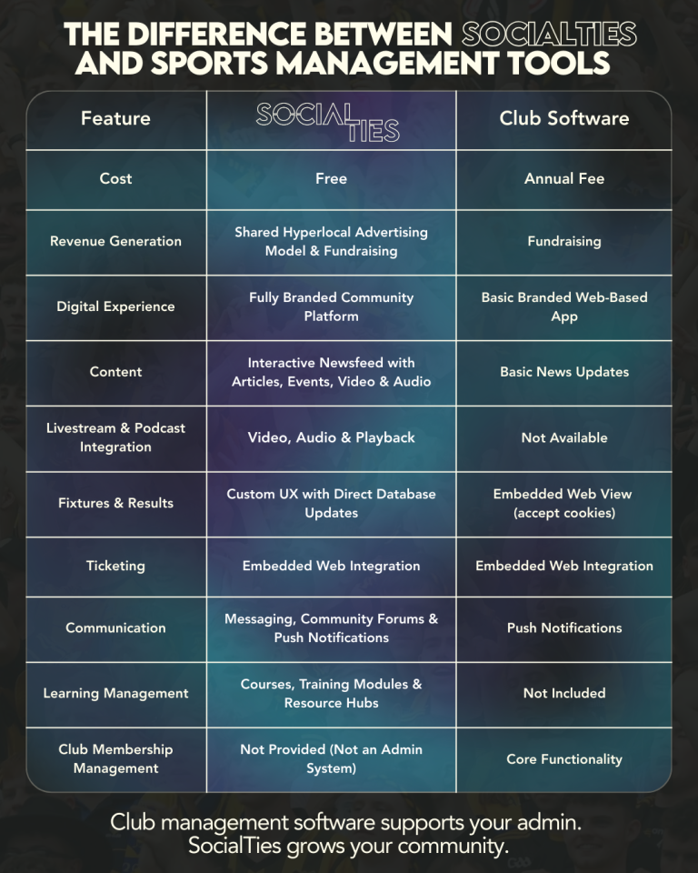 Reality: You don’t need an in-house IT department — you need a mindset of openness and the right partner. We’ve seen first-hand how small, volunteer-led clubs have leapfrogged ahead of larger, better-funded ones simply by being willing to adapt. SocialTies was built with these realities in mind: intuitive design, minimal training, and local support that understands the grassroots. It’s not about tech for tech’s sake — it’s about making your existing efforts more visible, efficient, and impactful.